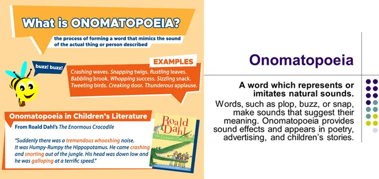 Onomatopoeia, a captivating linguistic concept often introduced in early education under the Onomatopoeia Definition for Kids, adds a delightful dimension to speech and everyday communication. This literary device involves words that imitate the sounds they describe, creating a vivid auditory experience for listeners and readers alike. From the playful "buzz" of a bee to the rhythmic "tick-tock" of a clock, onomatopoeic words infuse language with sensory richness. For children, exploring onomatopoeia is an engaging way to connect language with the world around them, fostering both linguistic and cognitive development. Moreover, these words often find their way into children's literature, enhancing storytelling by bringing narratives to life with sonic imagery. In essence, onomatopoeia not only enriches the tapestry of language but also invites a sense of playfulness and creativity into the realm of communication, making it an essential and enjoyable aspect of linguistic education.
