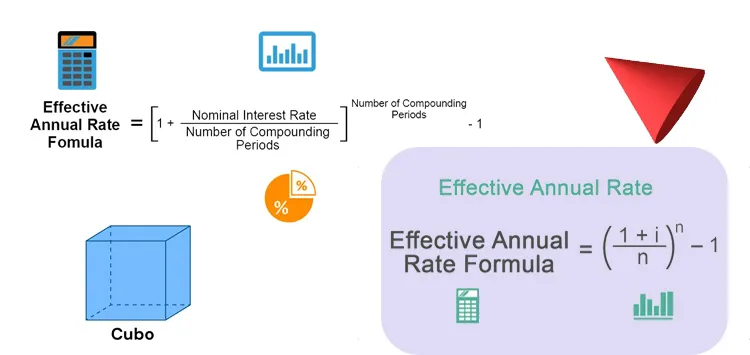 The formula for effective annual rate accounts for compounding periods within a year, expressed as: