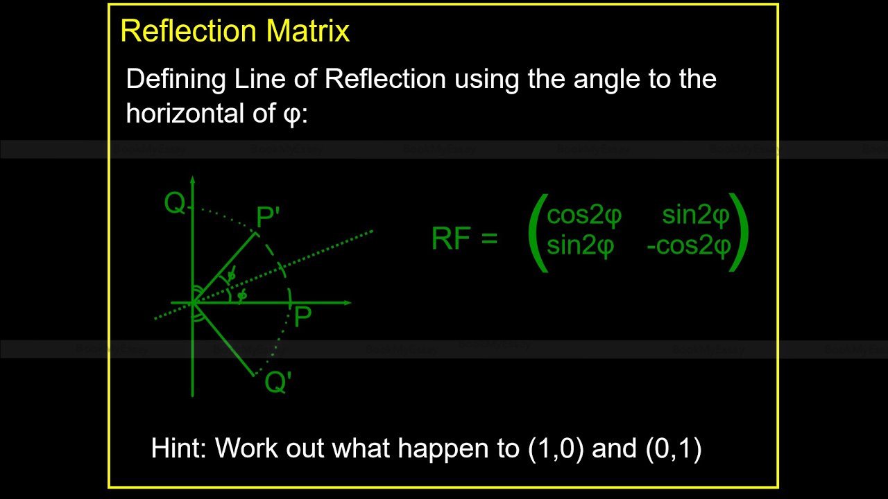 A reflection matrix is a fundamental concept in linear algebra used to represent reflections across lines or planes in mathematics. It is a square matrix that describes transformations mirroring geometric figures across an axis. This matrix helps analyze changes in the orientation or position of vectors, points, or shapes in space.